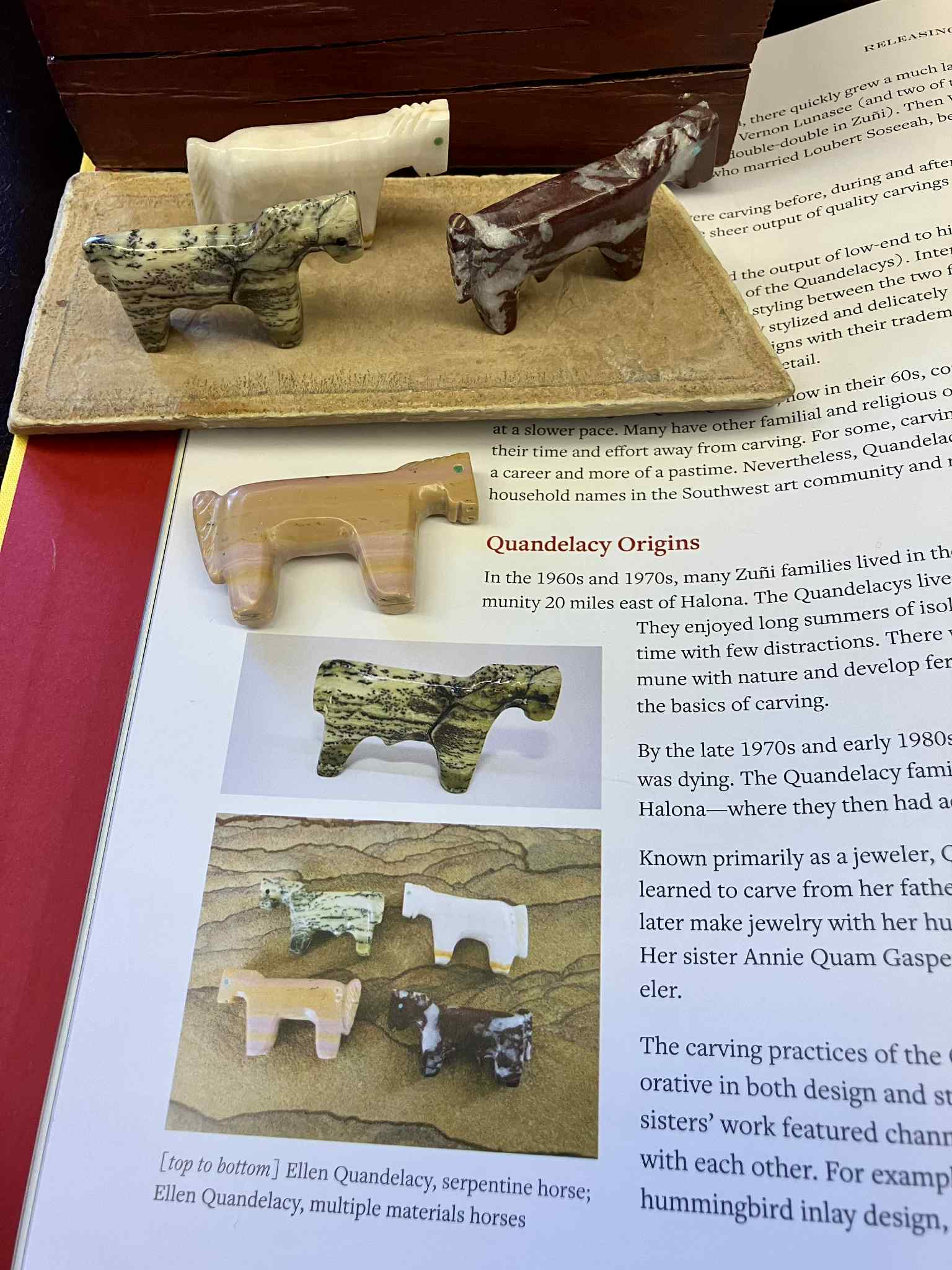 My friend, Dr. Harold Finkelstein has released the most extraordinary book on Zuni fetishes — over 20 years in the making. If you love Zuni fetishes, carving traditions, or the spirit behind these sacred objects, explore his site: ReleasingTheSpirit.Art This book features so much information and insight – 1,100 full-color photos, 450 pages of factual text, timelines, charts and even pronunciation guides. Visit his website today to purchase this two volume set and explore all that this book has to offer. I’ve included a picture of a few of my own horses from my collection, featured in the book and carved by Ellen Quandelacy.